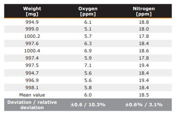 圖8 鋼鐵中氧/氮成分含量檢測(cè)結(jié)果