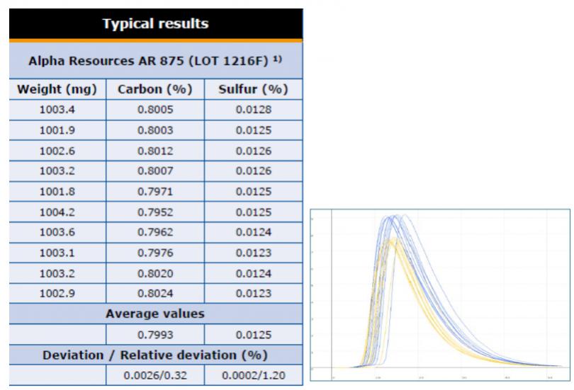 圖5 不銹鋼中的碳/硫成分含量測(cè)試結(jié)果