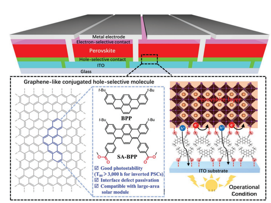 圖1. BPP和SA-BPP分子的化學結構,以及SA-BPP空穴選擇性接觸的示意圖。