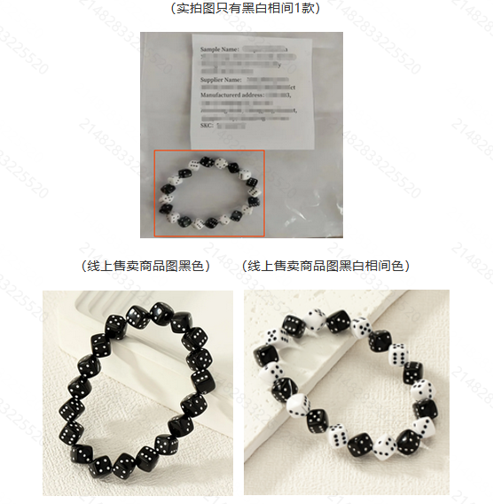 建議:如果銷售sku有多個顏色,每個顏色都需要在實拍圖中體現出來,實拍圖不可少拍/漏拍/不拍,實拍圖商品需要與線上銷售商品保持***致。因此需要補拍黑色款式手鏈的實拍圖,并上傳。