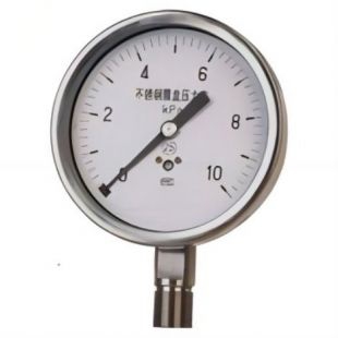 膜盒壓力表內部還包含有傳動機構,通常是杠桿、齒輪或彈簧系統,用于將膜盒的形變轉化為指針的移動。通過精細的機械設計,傳動機構能夠有效放大膜盒的微小形變,保證指針的讀數精度。壓力表的外殼***般采用防護性能強的金屬材料制成,既能防止外界環境的影響,又能確保儀表的耐用性和抗震性。