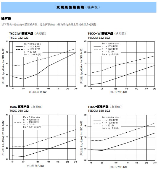 ▲低轉速。(600 rpm,車用型泵為400 rpm)、低壓力及高粘度(860 cSt,車用型泵為2000 cSt)運行能力 - 使T6 系列葉片泵能適應低溫工況,功耗小且無卡滯危險;