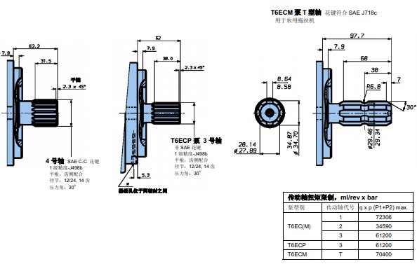 美***丹尼遜Denison公司,DENISON生產銷售的丹尼遜柱塞泵有以下幾大類型:1、PV系列和PVM系列:螺紋連接式,進出油口在尾部,PV:工業用,PVM:行走機械用(高速)。2、PVT和PVR系列:開式回路用泵, 側面油口,4螺栓,SAE法蘭連接,帶尾驅動備選,PVT:工業用,PVR:行走機械用(高速)。3、Premier 相系列:開式回路用泵,公制尺寸,(全功率)帶尾驅動備選。4、Worldcup 杯系列:開式回路用泵,帶尾驅動備選。5、Goldcup金杯系列:閉式回路用泵,控制功能集成化,(全功率)尾驅動備選,其他型式2備選。DENISON生產銷售的丹尼遜葉片泵有以下幾大類型:1、單聯TB系列:中等載荷,工業用及行走機械用:單聯T7B(S),T6C,T6D,T6E 系列。2、雙聯T7BB(S),T67CB,T6CC,T67DB,T6DC,T6DDS,T67EB,T6EC,T6ED 系列。3、三聯T67DBB,T67DCB,T6DCC,T67DDBS,T6DDCS,T67EDB(S),T6EDC(S) 系列。4、帶尾驅動類:單聯帶尾驅動T6CR,T6DR,T6ER 系列。雙聯帶尾驅動T6EE(S) 系列。三聯帶尾驅動T6DCCR, T6EDCR 系列。5、混合型:雙聯T6H20B,T6H20C,T6H29B,T6H29C,T6H29D 系列。