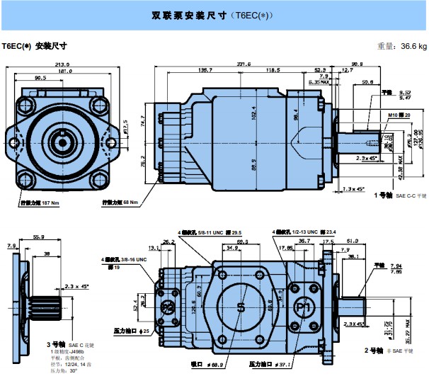 T6ec系列葉片泵是高壓力、低噪音、高效率的定量葉片泵。 丹尼遜油泵具有工作壓力高,可以達到275Bar,如降低工作壓力的使用,還可以延長油泵的工作壽命!容積效率高,由此可以提高生產率,減少發熱和降低液壓設備的運行成本。機械效率高,從而減少了能量的消耗。轉速范圍寬,轉速范圍是600---2800rpm,可以優化工作狀態,降低噪音。抗污染能力強,丹尼遜油泵采用的是雙唇結構的葉片,具有 強的抗污染能力,使用壽命長。適應液壓介質的粘度范圍大,能在低溫下啟動和高溫下運行,能提供高壓力,噪聲低,而且容積效率高