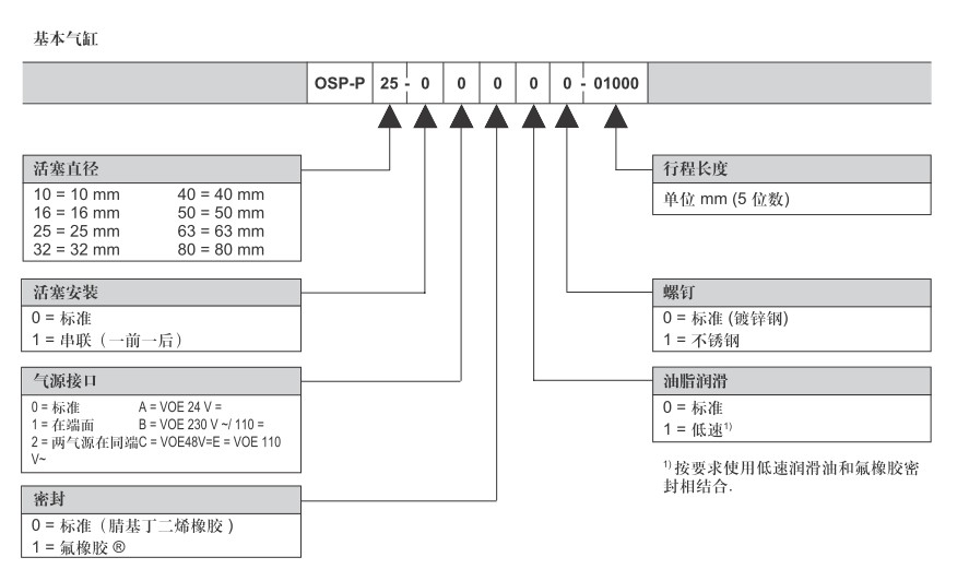 RIGA無桿氣缸OSP-P系列型號(hào)表示說明