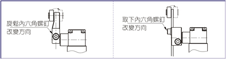 1、動作方向可變化(只針對標準型,大角度型無此項)