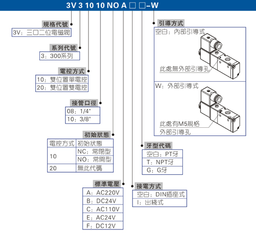 臺灣亞德客 3V300系列 電磁閥