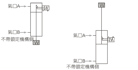 1、鎖緊狀態下,在兩側氣口無加壓狀態下對氣口A進行壓力供給的話,存在類似鎖緊未解除,或鎖定突然解除,活塞桿飛出的大危險。解除鎖定機構時,請務必對氣口B進行壓力供給,在鎖定機構不帶負荷狀態下進行解除。