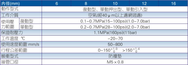 7、Φ4缸徑氣缸負載須與氣缸同軸,避免側向負載,否則活塞桿會彎曲變形且損壞桿端螺紋。單動型不可在回程時加載;