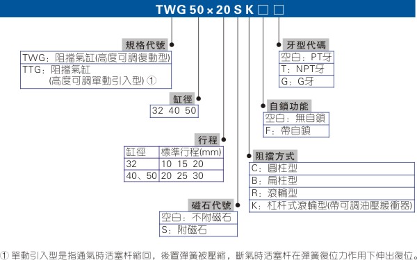 臺(tái)灣亞德客 TWQ系列阻擋氣缸