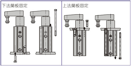 2、安裝方式分為下法蘭固定板與上法蘭固定板,具體如下圖所示;