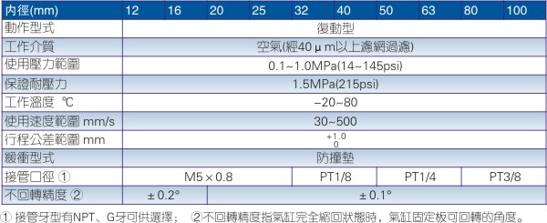 2、請嚴格遵守氣缸固定板回轉力矩的限制要求,超出限制范圍的使用會造成氣缸的損壞或使用壽命的縮短;
