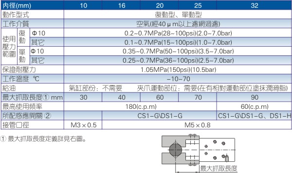 4、作動方式為活塞桿推出時夾緊,縮回時張開,夾緊力比張開力大20%~30%;