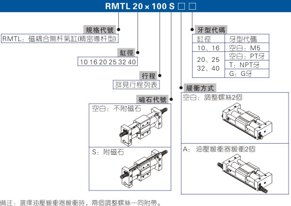亞德客AirTAC RMTL系列無(wú)桿氣缸