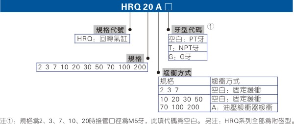 注:HRQ2、3、7僅有調整螺絲固定緩沖方式,無油壓緩沖器緩沖方式。