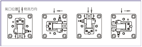 當(dāng)法蘭固定時(shí),如需調(diào)整阻擋方向,可調(diào)整導(dǎo)向桿的安裝位置即可改變阻擋氣缸的工作方向。