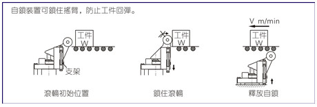 4、杠桿式滾輪結(jié)構(gòu)阻擋氣缸配有自鎖裝置,可防止搖臂回彈對(duì)被阻擋物體的回推;
