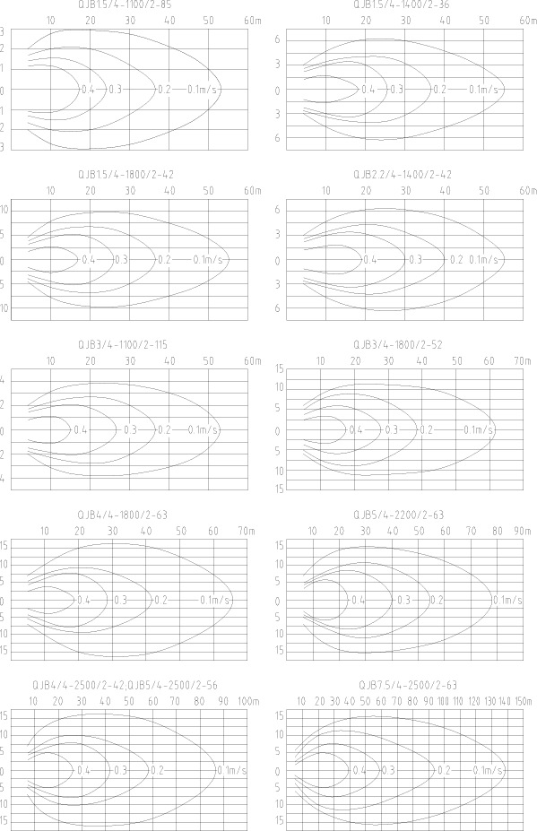 潛水攪拌機的選型是 項比較復雜的工作,選型的正確與否直接影響設備的正常使用,作為選型的原則就是要讓攪拌機在適合的容積里發揮充分的攪拌功能, 般可用流速來確定。根據污水處理廠不同的工藝要求,攪拌機 佳流速應保證在0.15~0.3m/s 之間,如果低于0.15m/s 的流速則達不到推流攪拌效果,超過0.3m/s 的流速則會影響工藝效果且造成浪費。所以在選型前 確定潛水攪拌機運用的場所,如:污水池、污泥池、生化池;其次是介質的參數,如:懸浮物含量、粘度、溫度、PH 值;還有水池的形狀、水深等。