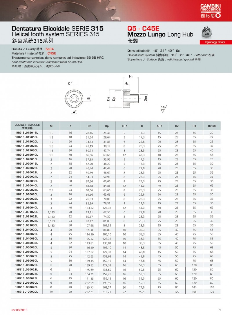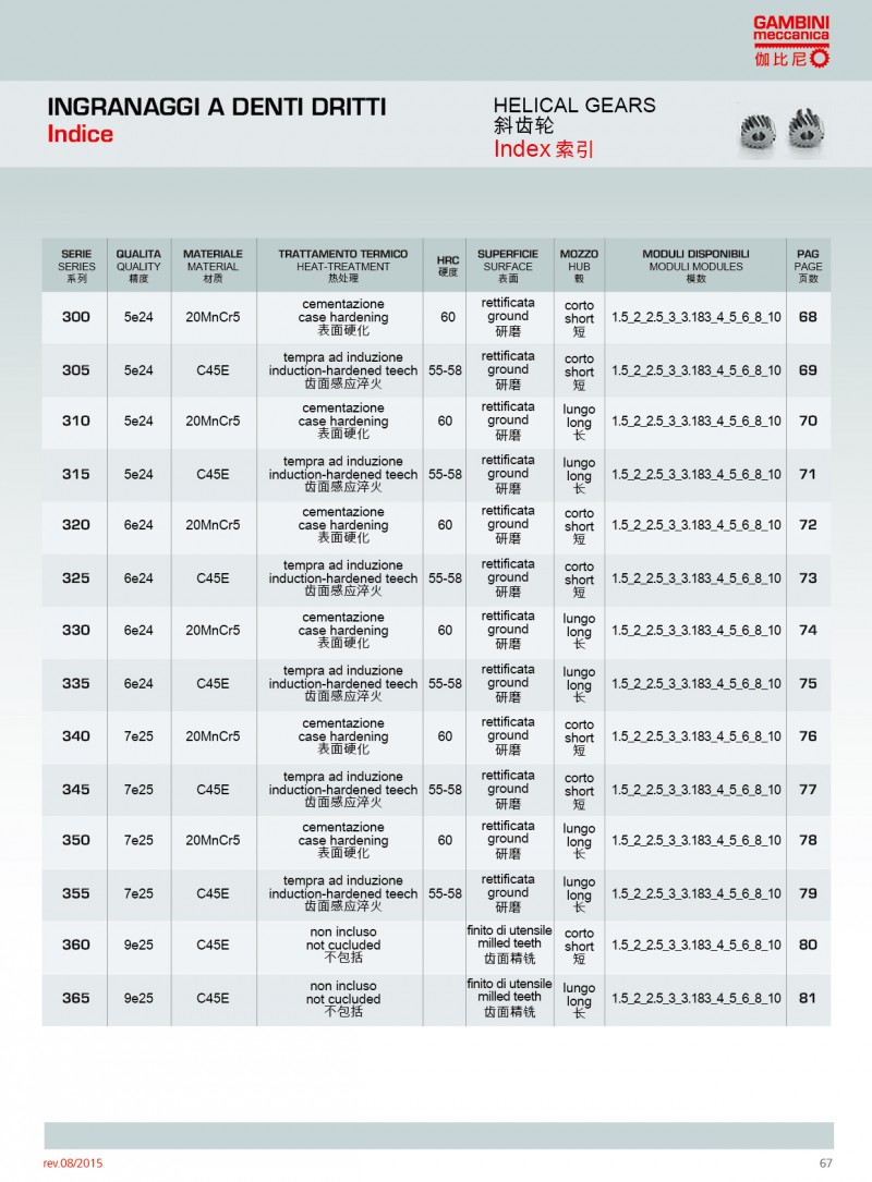 Gambini可使用不同類型的原材料生產高精度的直齒條和斜齒條。我們生產的齒輪齒條模數范圍為M0.5到M42,品質等 范圍Q5到Q10。品質等 Q5的齒條長度為1000mm,如果品質等 為Q6,可生產的單件長度可達2000mm。Gambini高精度的齒條和齒輪廣泛應用激光切割;CNC機床、三坐標測量儀、 七軸機器人等.產品有多種不同類型的熱處理方法。市面上***常使用和要求加工的是感應淬火齒條和表面硬化和感應淬火的齒輪。當然,我們也生產不需要熱處理的產品(所有我們的型號)。通過特殊研究,我們也可生產保護工件(防腐蝕和防磨損)的不同類型的表面處理;也可進行特殊上色和表面彩色處理。