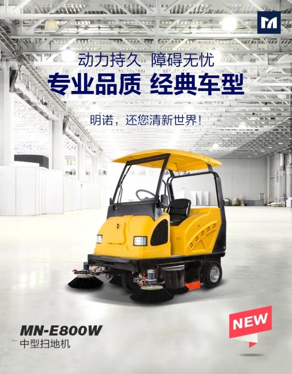 MN-E800W是 款小型電動清掃車,為吸塵、掃地、噴水相結合的自動清潔 體機。加大車輪,通過性高,適用于廣場、景區、馬路、公園、環衛、物業保潔、高校的室外清掃。