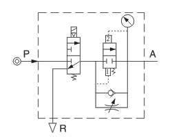 慢啟閥用于在氣動系統中安全地建立壓力,起安全保護作用。進氣與慢啟閥的輸入P相連,若線圈通電時,三口二位閥打開,此時有少量的空氣通過節流閥到輸出A,使系統的壓力緩慢地建立起來;當輸出壓力等于輸入壓力 半時,慢啟閥完全開啟,此時流量達到本身 高。當線圈斷電時,進氣P關閉,空氣便通過單向閥返回到R口快速排走,系統壓力降到零,對整個系統起到安全保護作用。