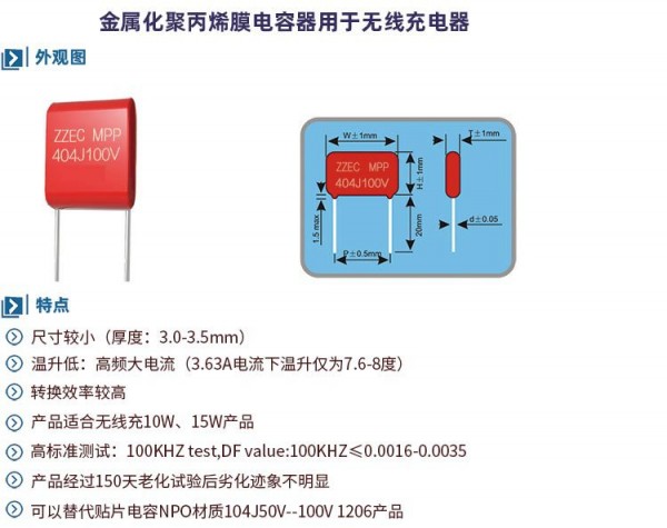 目前行業內,已經有很多業內企業開始使用科雅ZZEC無線充專用薄膜電容器。