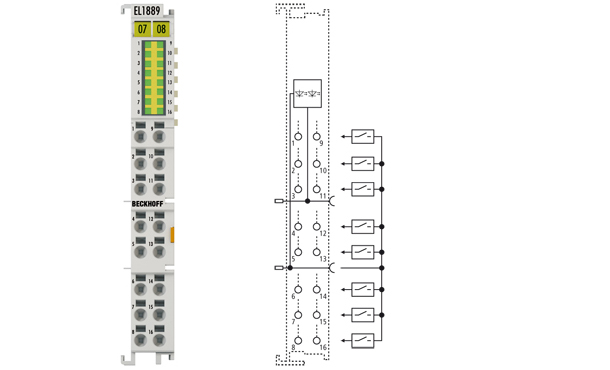 EL1889 | 高密度 EtherCAT 端子模塊,16 通道數字量輸入,24 V DC,0 V(接地)轉換