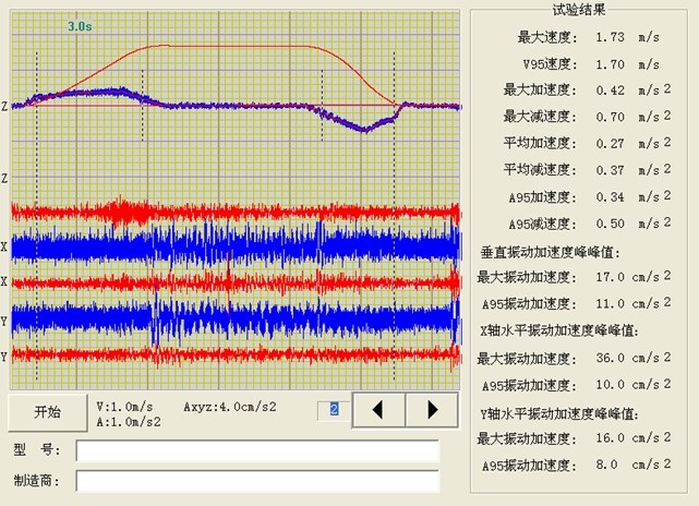 ○電梯的垂直方向(Z軸)和水平方向(X軸Y軸) 大振動加速度峰峰值、A95峰峰值。