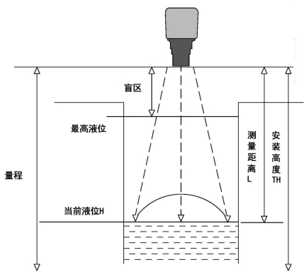 儀表量程指儀表能夠測量的距離,安裝高度TH應小于量程。