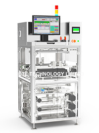TS-100C通過(guò)升降機(jī)與測(cè)試機(jī)相配合,實(shí)現(xiàn)了多機(jī)串聯(lián)使用。軌道數(shù)量根據(jù)實(shí)際需要可以增減,使用靈活。