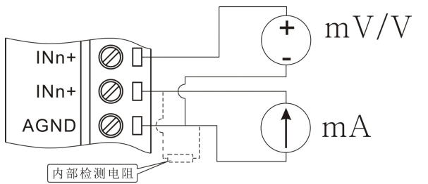 電壓信號(hào)與電流信號(hào)可以直接接入模塊檢測(cè),采集電流需要注意的是在定貨時(shí)需告知模塊用于采集電流信號(hào),這樣模塊在出廠(chǎng)時(shí)會(huì)在模塊內(nèi)部放置高精度電流檢測(cè)電阻且出廠(chǎng)時(shí)用標(biāo)準(zhǔn)電流信號(hào)校準(zhǔn)。