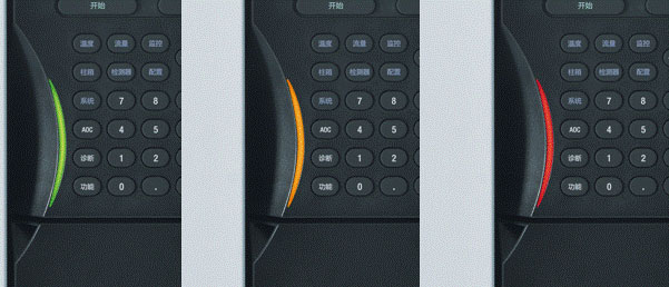 操作面板上流線型設計的LED警示燈利用顏色和頻閃的不同,很好地起到了全面提示的作用。它采用與大家再熟悉不過的交通信號燈完全一致的顏色來起到警示作用,弧線設計又讓乏味的檢測工作多了幾分俏皮。
