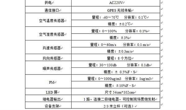 噪聲揚塵監(jiān)測站是專門針對在建工程項目的監(jiān)測設(shè)備。該設(shè)備具有1路百葉盒(溫度、濕度、噪聲、PM2.5、PM10、氣壓、TSP)采集、1路風速采集、1路風向采集、1繼電器輸出(默認可接現(xiàn)場二***繼電器控制霧炮)、1路485從站輸出;該設(shè)備可通過GPRS方式將數(shù)據(jù)上傳監(jiān)控軟件平臺,同時該主機能夠外接1路LED屏(54cm*102cm)實時顯示當前數(shù)值信息。