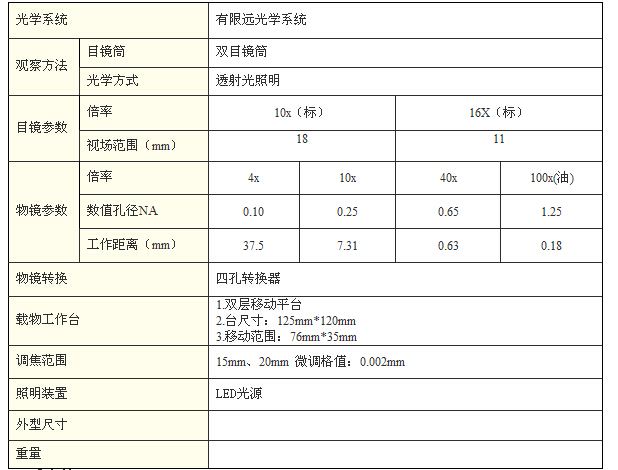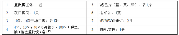 4 | 4×,10×,40×(彈簧),100×(彈簧、油)消色差物鏡:各1只 | 8 | 隨機文件:1套 |