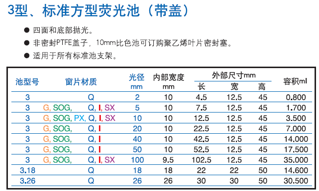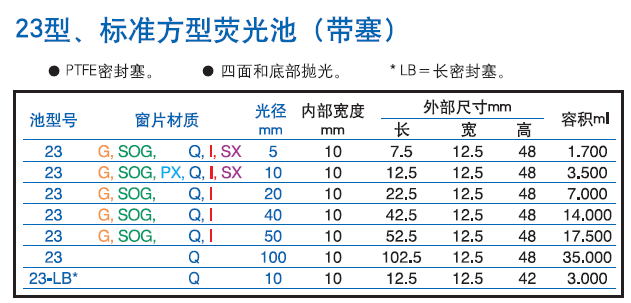 熒光流通樣品池Type 46,47,71,72,583F,73F
