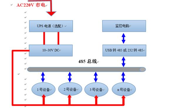 寬電壓電源輸入10~30V均可。485信號線接線時(shí)注意AB兩條線不能接反,總線上多臺設(shè)備間地址不能沖突。