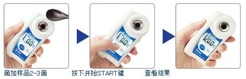 滴2-3滴樣品至數顯鹽度計棱鏡表面→按下START(開始)鍵→測量值及溫度將在3秒內顯示