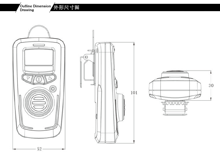 四、R10環(huán)氧乙烷檢測儀的外形尺寸圖: