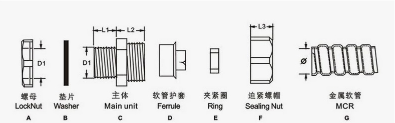 產品材質:A.C.F部位采用優質加厚型鋅合金制成、B.E部分采用丁晴橡膠制成、D為鐵皮制成